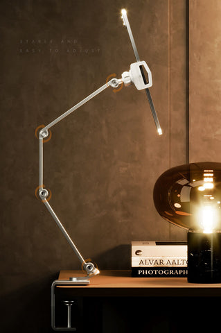 Durable, Scratch-Resistant and Non-Slip: Detail-oriented rubber pads on the stand and base clip keep your gadgets and desktop surfaces free from scratches. Class 2 solid adjustable aluminum alloy arms ensure durability and effortless stability, providing more precise and stable positioning than gooseneck designs without any wobble.