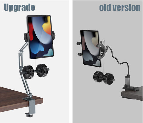 Hands free: The highly flexible 15" long aluminum arm is sturdy for a variety of swivels and folds, adjusts as a gooseneck arm, and safely sits at the ideal distance and angle when you lay down your iPad Pro/iPhone Compatible with any size for viewing, eating, reading, cooking, typing, writing, watching movies or playing games.