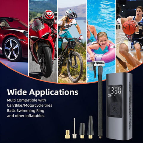 • 【WIDE RANGE OF APPLICATIONS】3 Nozzles more Included. Inflates any  valve on cars, SUVs, motorcycles, and bicycles; the included accessories quickly inflate balls, air pillows, cushions, balloons and mattresses. NOTE: This pump is NOT intended for use with high pressure or large volume applications like pools and Inflatable canoe.