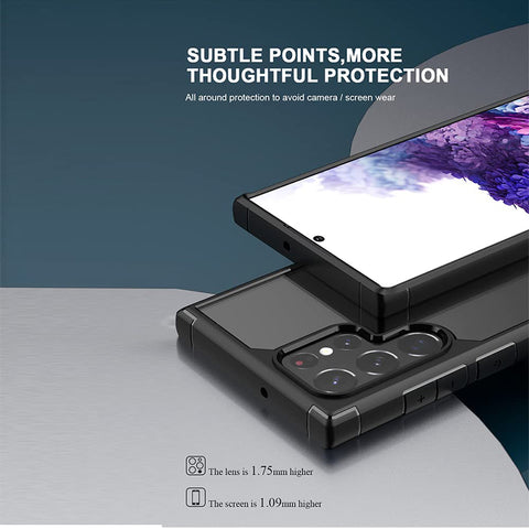 【Premium Material】The Galaxy S22 case adapts the high quality PC as back cover,smooth touch feeling,will not turn yellow, transparent design makes your phone clearly visible.